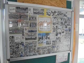 (下、事務室前に学校の航空写真(昭和30年代、昭和50年代)のものを掲示しました。)