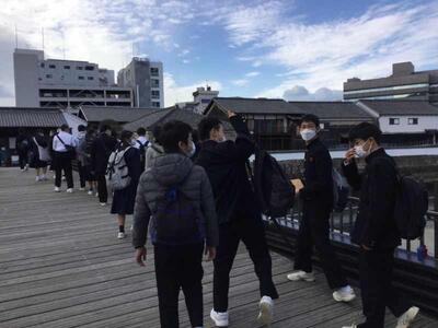 本日は木曜校時の6時間授業です。本日はふるさと教育推進事業(1年生)、講師派遣事業(3年生)が予定されています。本日の生徒の皆さんの下校予定時刻は16時15分頃を予定しています。