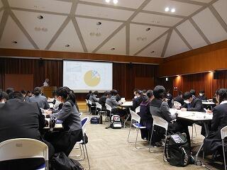 2月22日(土)に市役所講堂において、「のべおか未来ワークショップ」が開催されました。本校からは、生徒会の平山さん、石橋さん、高橋くんが参加しました。このワークショップは、市内の中高校生が2040年の未来市長になってその立場から、現市長へ今実施して欲しい制作を考え、提言するというものでした。午前は、今、延岡市が抱える諸課題(人口減少、就業者人口、廃棄物、災害リスク)について学び、午後は、KJ法等によって各グループ毎に課題を整理し、政策をまとめ最後に読山市長へ政策提言を行いました。公立、私立、中高の垣根を越えたグループ編成の中で、協議を行い提言をまとめる過程で交流を深めるとともに、延岡市の現状や未来を考える大変良い機会となりました。参加した3名の皆さん、大変ご苦労様でした。