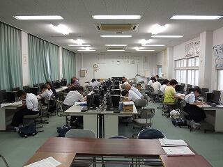 (下、1年生、はげまし隊の皆様による個別指導、パソコン室)