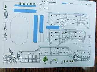 10日(日)は、参観日・バザーが実施されます。参観授業(体育:長距離走)や飲食コーナー(ケーキ・お弁当等)確保のために、駐車場が制限されます。駐車スペースは、下図のとおり、グラウンドの一部、校舎2棟と3棟の間の中庭です。ご理解・ご協力お願いします。