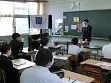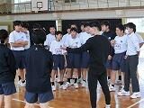 フットサル競技やボクシング・K-1競技で活躍した講師2名を招き、JFL夢の教室を実施しました。2年生③クラスを2時間筒授業していただきました。2時間のうち前半は、夢先生と体育館でゲームをしました。ボールや身体を使ったゲームでは、途中で作戦タイムを設けながら、協力することの大切さを学びました。後半は、各教室で夢先生の体験からさまざまなことを学びました。生徒たちの感想は、「夢を追いかけていれば、挫折しても周りで助けてくれる大人がいること」「夢をことばに出しておくと夢が叶いやすいこと」「挫折したときにかけてもらった言葉を大切にしていること」「今成功している人も、影で努力をしていること」・・・多くのことを生徒たちは学ぶことができた貴重な授業になりました。