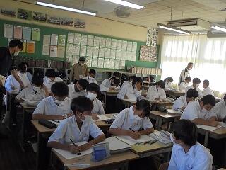 本日は特別時間割の6時間授業です。本日は生徒集会、英検IBA(1、2年生)、教育相談(3年生希望者のみ)が予定されています。本日はALTの訪問日となっています。本日の生徒の皆さんの下校予定時刻は16時15分頃を予定しています。