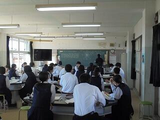 本日は木曜校時の6時間授業です。本日はふるさと教育推進事業(1年生)、講師派遣事業(3年生)が予定されています。本日の生徒の皆さんの下校予定時刻は16時15分頃を予定しています。