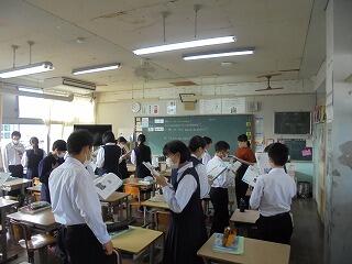 本日は金曜校時の6時間授業です。本日は小中学校音楽祭が行われ、本校からは3年3・5組が参加します。なお、保護者の皆様の会場への入場はできません。本日の生徒の皆さんの下校予定時刻は16時15分頃を予定しています。