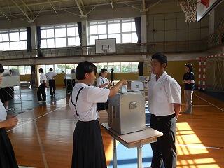 本日午後、生徒会役員を決めるための立会演説会と選挙が行われました。立候補者の皆さんは、それぞれ学校や生徒会活動への思いを熱心に述べてくれました。今年は現在の生徒会役員の皆さんの活動に刺激されたのか、例年になく立候補者が多く27名が立候補しました。演説後の投票も大変スムーズに行われました。立候補者の皆さん、長い期間の選挙活動ご苦労様でした。選挙管理委員会の皆さん、現生徒会役員の皆さん、準備や運営、ありがとうございました。