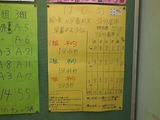 (下、1学年の掲示板、給食準備タイム掲示等)