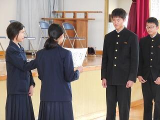 (下、生徒会による学力クラスマッチの表彰、3年2組)