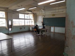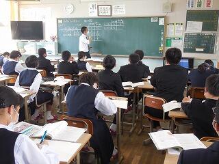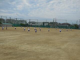 (下、1時間目の授業の様子です、3年1組が体育大会に向けてリレーの練習をしています)