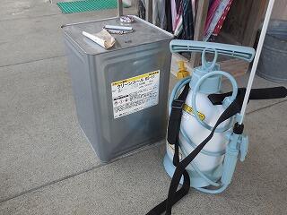 (下、アルコール消毒液と噴霧器)