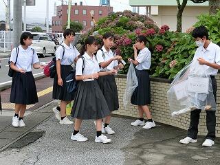 生徒会の恒例行事である朝の地区清掃活動(ゴミ拾い)が実施されました。雨が気になりましたが、今月も多くの生徒が自主的に参加していました。通学路の燃えるゴミ、燃えないゴミが写真のように集まりました。私たち生徒自身もゴミのポイ捨てをしないようにしたいですね。