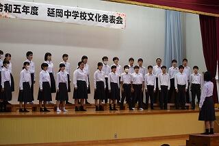 スタートは、合唱コンクールです。学年が上がる毎にレベルも上がっていきました。3年生は、後輩のよき見本となるすばらしい合唱。1・2年生に「あんな合唱を来年は自分達もしてみたい!!」と思わせる内容でした。英語暗唱・弁論は、堂々とした立派な発表でした。総合的な学習の時間の発表は、各学年とも工夫されたものになっていました。吹奏楽部演奏は、楽しい、リズミカルな演奏で、聞く人も心おどる演奏。延岡中の文化活動の成果を十分発揮できた1日になりました。