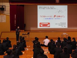(下、午後は宮崎大学医学部付属病院救命救急センターの金丸勝弘先生の講話でした。題は「ドクターヘリに夢をのせて」です)