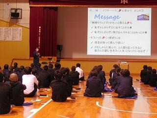 本日は木曜校時の6時間授業です。2年生の総合的な学習の時間に、宮崎大学救命救急センターの金丸勝弘先生の講演会(キャリア教育)が実施されます。朝自習の時間は生徒集会が行われます。内容は挨拶の確認と送別遠足についてです。