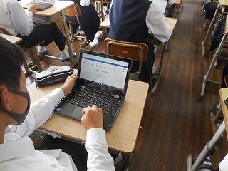 (下、技術の授業では、タブレットを使って小テストを行っています)