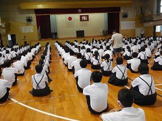 本日は6時間授業です。朝の時間に全校集会を実施しました。内容は生徒指導に関する講話で、「誰もが気持ちよく学校生活をおくるために気を付けて欲しいこと(人間関係)」、「SNSの使用等(つながり)」についてでした。生徒指導担当の先生の話を生徒は真剣に聞いていたと思います。午後の総合的な学習の時間は、全学年キャリア教育を行いました。今年度の総合的な学習の時間では、臨時休業を踏まえキャリア教育を再編成した内容で取り組んでいます。最初の8時間は全学年共通内容で行い、その後(10月22日以降)は、学年毎に内容を変更して行う計画です。コロナ禍の中、本校では様々な取組を進めています。