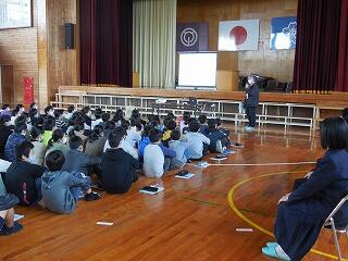 (下、午後に東小学校で新入生説明会を行いました、学習面、生活面、生徒会活動について説明を行いました)