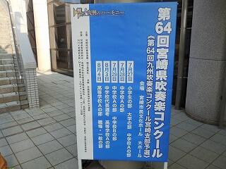 7月27日(土)から第64回宮崎県吹奏楽コンクールが開催されました。本校は7月27日(土)の午後5時53分から演奏でした。全員が心をひとつにして課題曲、自由曲を演奏しました。結果は銀賞でした。ひとりひとりがしっかりと役割を果たし、素晴らしい音色が会場に響き渡っていました。ここまで吹奏楽部で頑張ってきた6名の3年生の皆さん、最後のコンクールご苦労様でした。1・2年生の皆さんは、先輩方を見習って頑張ってください。