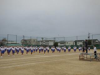 (下、強い風の中特別体育競技会が開催されました、開会式の様子)
