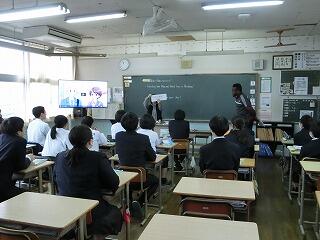休み時間にも多くの生徒がALTの先生に声をかけています。英語によるコミュニケーションが気軽にできるといいですね。