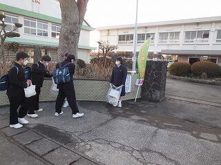 本日は水曜校時の5時間授業です。部活動は中止です。生徒の皆さんの下校時間は15時15分以降です。朝はクリーンウオークデー(通学路のゴミを拾って登校する生徒会活動)でした。地域の方から感謝の連絡がありました。