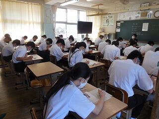 (下、1時間目3年生のテストの様子)
