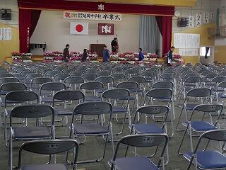 3月9日にお知らせしたとおり、3月16日(月)に第73回卒業証書授与式を下記のとおりに実施いたします。当日、3年生は自宅で検温を必ずおこなってください。そして登校時に、男子は靴箱付近、女子は武道場で検温結果を担当の先生方に報告してください。検温忘れの場合は、その場で検温を行います。37.5度以上の発熱が確認された場合は、御家庭に連絡し迎えに来ていただきます。また、式の出席者は全員マスク着用をお願い致します。兄弟姉妹、祖父母の皆様の出席は、大変申し訳ありませんが今回の事態を御理解いただき御遠慮をお願い申しあげます。当日、37.5度以上の発熱がある保護者の皆様の御出席も御遠慮ください。もし、この週末に、不測の事態が発生し式の実施ができない場合は、このホームページと学校メールにて連絡を致します。式が滞りなくできることを心から願っております。尚、当日はケーブルメディアワイワイが取材の来られますのでご承知おきください。