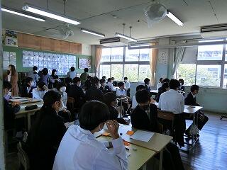 保護者の皆様方におかれましては、大変ご多用の中ご出席いただきありがとうございます。天気にも恵まれ、多くの方々のご参観をいただいております。特に、中学1年生の保護者の方々におかれましては、中学校での子どもたちの様子が知りたくて来られた方も多かったです。教室の中に入りきれないほどの参観でした。