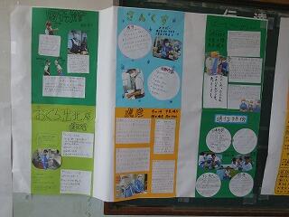 (下、3棟3階の2年掲示版、職場体験学習のレポートです)