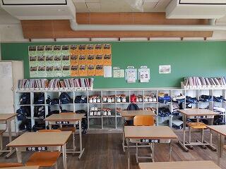 (下、教室紹介、3年1組の教室です、前と後ろ)