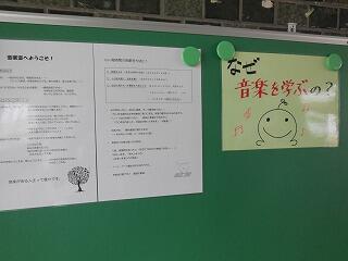 (下、校内掲示物、音楽室前です)