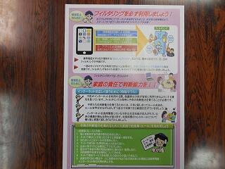 本日、下記の資料を生徒に配付しております。内容はインターネット利用に関するものです。1月20日に県内の中高生が、SNS上に不適切な画像・動画を拡散させ摘発・補導されたという報道がありました。保護者の皆様には、本日配付の資料も活用していただきながら情報モラルについて御指導をお願い致します。
