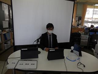 昨日午後、生徒会によるミニ生徒総会及び部活動紹介が実施されました。ミニ生徒総会では各委員会の活動や行事、前年度予算の決算報告と今年度の予算案の承認等が行われました。部活動紹介では各部のキャプテンが部活動紹介を行いました。全て職員室の仮設スタジオから放送で行われました。