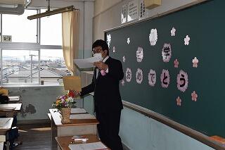令和2年度の新任式・新任式について生徒の皆さんへ連絡です。明日、4月7日(火)は、令和2年度の始業の日です。下記の日程で新任式・始業式を実施します。新型コロナウイルス感染症対策のため、当日は朝、自宅で必ず検温を行い、今、自宅でつけている健康観察表の欄外に記入し持参して下さい。37.5度以上の熱がある場合は登校を控えてください。給食はありません。新任式と始業式は、タブレット端末とテレビモニター及び放送にて実施する予定です。