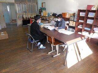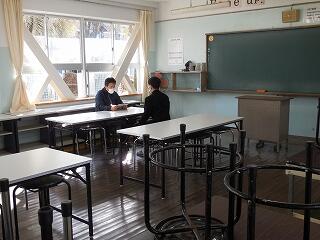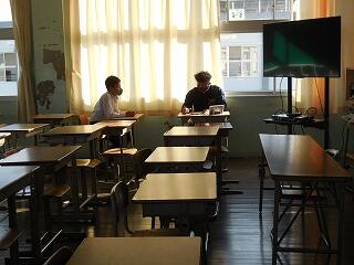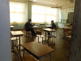 (下、6時間目の教育相談の様子です。担任の先生方が、学習、進路、人間関係などについての悩みを聞いています、下は3年3組です)