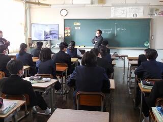 本日は火曜校時で6時間授業です。ALTのチャック・シオン先生の来校日です。6時間目は、1・2年生は教育相談、3年生は私立高校入試事前指導が実施されます。いよいよ私立高校の入試が始まります。明日は聖心ウルスラ学園高校、延岡学園高校、宮崎日大高校の入試が市内各会場で実施されます。