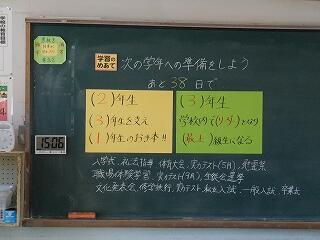 本日は木曜校時の6時間授業です。2・3年生は5時間目に総合的な学習の時間です。6時間目は全学年教育相談を行います。また、本日は3年生の私立高校の入試2日目で、日章学園の試験があります。本校からは2名が受験します。力を発揮して欲しいと思います。