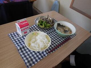 本日は木曜校時の5時間授業です。ALTのチャック・シオン先生の来校日です。本日が今年度最後の給食となります。