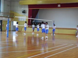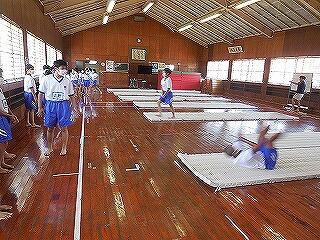 (下、1時間目の授業の様子です、1年1組保健体育マット運動です)