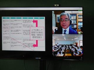 (下、3年2組の論理コミュニケーション遠隔授業の様子です)