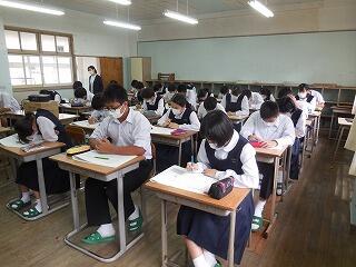 (下、全国学力調査の様子です。3年生が取り組んでいます)