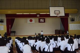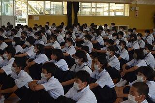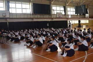 本日は水曜校時の5時間授業です。2年生は今日と明日職場体験学習で市内40の事業所で職場体験学習に参加します。3年生は実力テストの2日目で、5時間目には薬物乱用防止教室に参加します。
