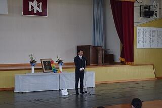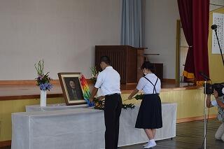 本日は火曜校時の6時間授業です。ALTのチャック・シオン先生の来校日です。6時間目に延岡大空襲慰霊祭をおこないます。