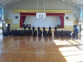 本日は金曜校時の6時間授業です。3年生は6時間目に県立高校自己推薦者に対する事前指導を行います。本日も部活動は中止です。生徒の皆さんの下校時間は16時15分以降となります。