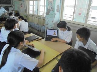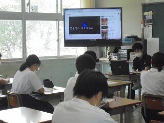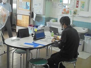 (下、リモートによる表彰、終業式の様子です。)