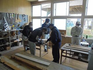 (下、本日の技術員の丸のこ講習会の様子です。本校の技術員室で行われました。)