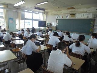 本日は木曜校時の6時間授業です。本日は朝に生徒集会、5時間目に情報モラル教室、6時間目に中体連県大会と県吹奏楽コンクールの激励式がいずれもリモートで予定されています。本日の生徒の皆さんの下校予定時刻は16時15分頃を予定しています。