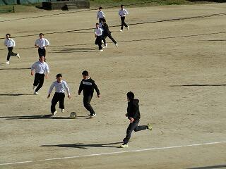 ★風は冷たいもののとても良い天気です。先生方もグラウンドで生徒たちとサッカーを楽しんでます。