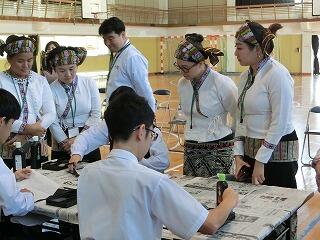ミャンマーで企業を経営されている方々が本校を訪れ、日本の教育について見学し、生徒との交流を深めました。