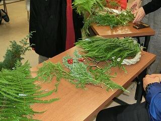 講師を招き、しめ縄づくりを実施しました。材料は「ヒカゲノカズラ」「ヒムロ杉」「山帰来」・・・です。講師の方の分かりやすい説明で、それぞれ楽しいしめ縄が完成しました。作業中は、楽しい会話で盛り上がり、あっという間の90分でした。お正月に飾るのが楽しみになりました。